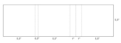 Take white cardstock a cut a rectangle size 5.5″ x 19″. Make score lines like on the sketch bellow (score at 5.5″ – 6″ – 11.5″ – 12.5″ – 13.5″).