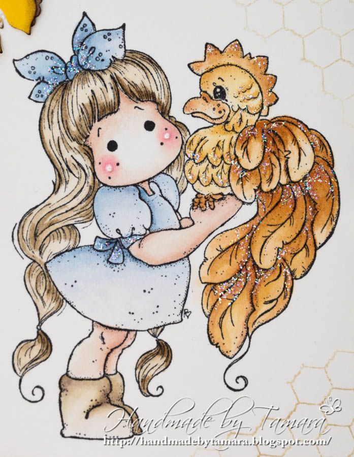 I love all of those gorgeous flowers! This Tilda is adorable I love the rooster and you colored them both beautifully.