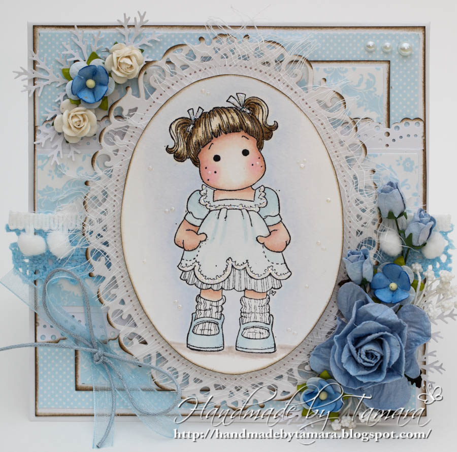 Such a pretty card Tamara, beautiful design, paper choice and such a sweet Tilda. Thank you for joining us at Midweek Magnolias. Good luck!