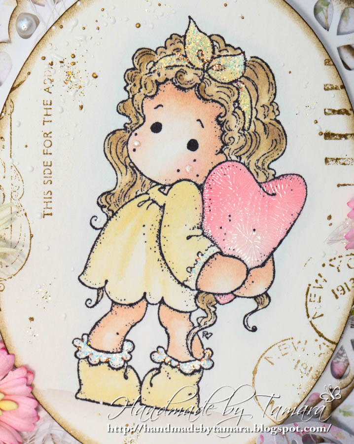 I chose Tilda hiding heart stamp from Magnolia’s With love Collection, 2013. This stamp is one of my favourites from this collection. Isn’t she cute? I got this stamp last week and I just had to use it.