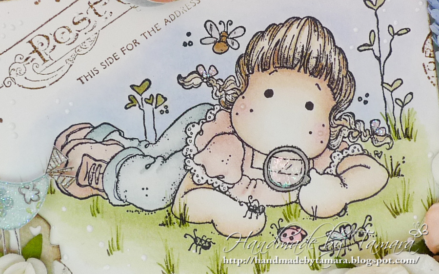 I had a few stamps in mind when I read about this theme, but finally chose Explore Tilda from Sweet rainbow Collection. This one is one of the first Tildas in my collection, but is rearly used.