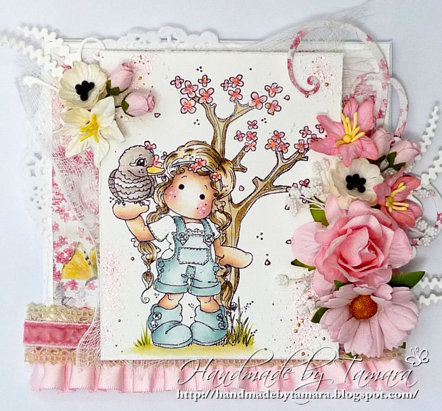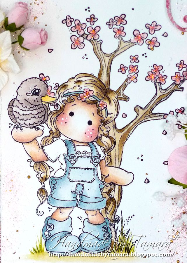 When I saw the theme for this challenge there was only one stamp in my mind and that is sweet Tilda with her Kookaburra from Australia collection. I recently bought this stamp and I didn’t know that I would use/need it so soon. 🙂 I masked her with Spring tree from Easter Collection and I just love how it turned out. Don’t you? 🙂