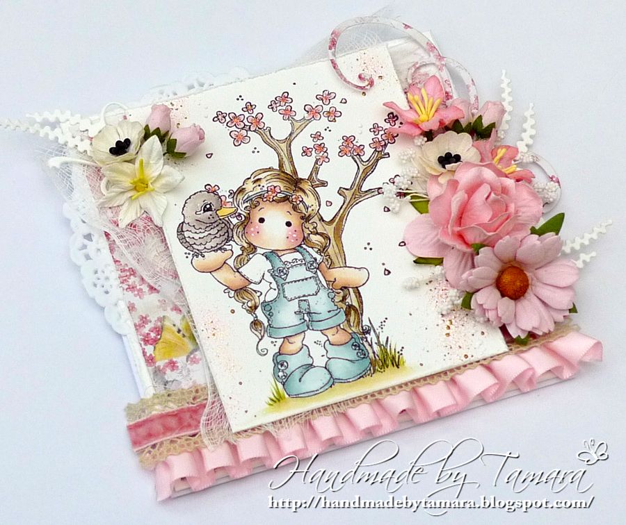 Like always I added a lot of frantage, lace and flowers. Flowers on spring tree are covered with stickles glue to add some bling! lol