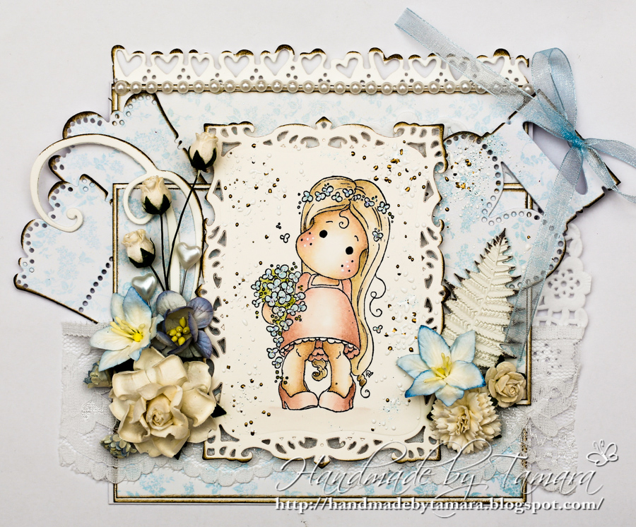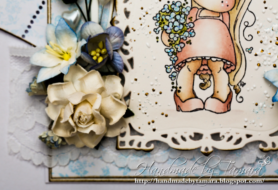 A gorgeous card Tamara, I love your soft, gentle colour scheme – a beautiful Tilda and gorgeous details!!