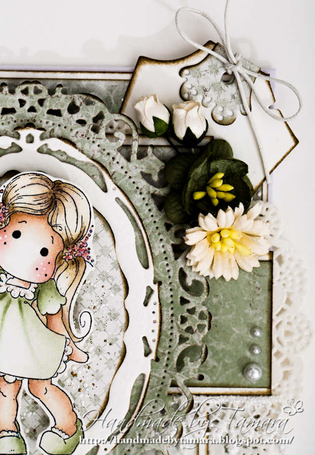 I used Special day Tilda from Special Moment Collection. I cut off her veil and used her for a Birthday card. I like her more this way. 🙂