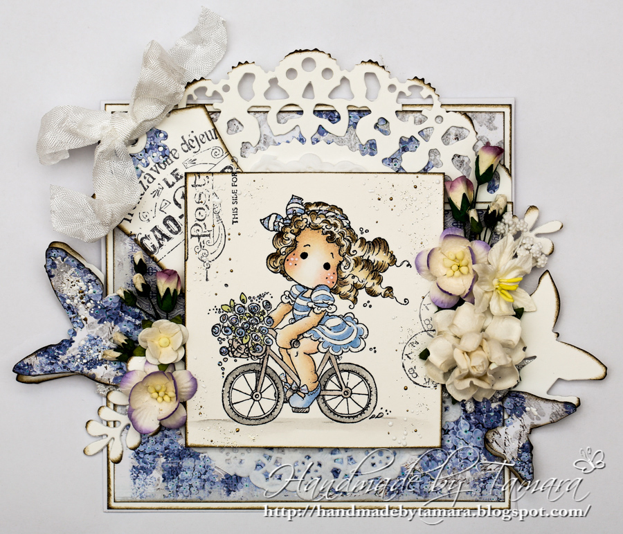 On the road Tilda for sure is the cutest girl in town. Great coloring and your card is beautiful. Thanks for sharing with us @ Tilda's town this week!