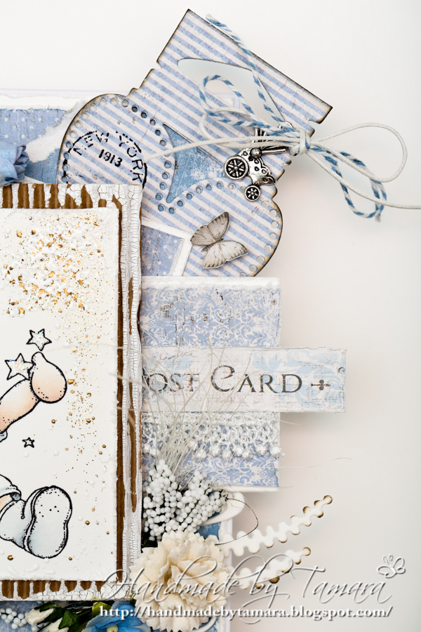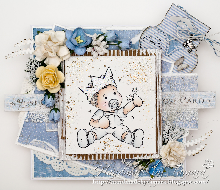 I have a new baby card to show you today. It’s blue, so it’s for a boy. 🙂 I wanted to create a shabby blue look on this one. Here it is …