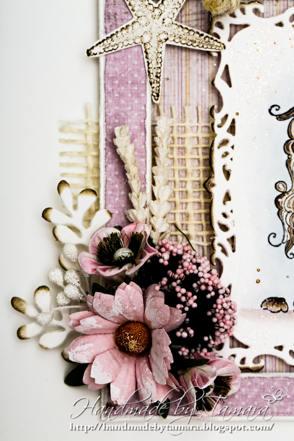 My mum’s friend asked me to make two wall hangers for her granddaughters. Two different themes, one of them sea and this is what I came up with. 🙂 I used stamp from Summer stamp club kit, Sea shell Tilda. She wanted both hangers to be in pink and you know me – pink is so my color!! lol
