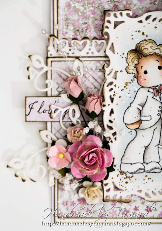 I used my old dies and my new Magnolia stamp Vintage bridal couple. 😉