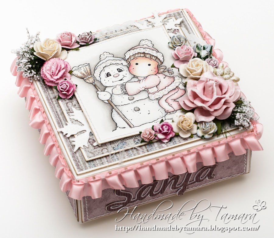 Do you remember my Joyful Tilda card from last week? I was asked to do a birthday card and a gift box for a 2nd Birthday, theme – Winter. I already showed you the card, so today I have a gift box for you. Yes, another one. lol