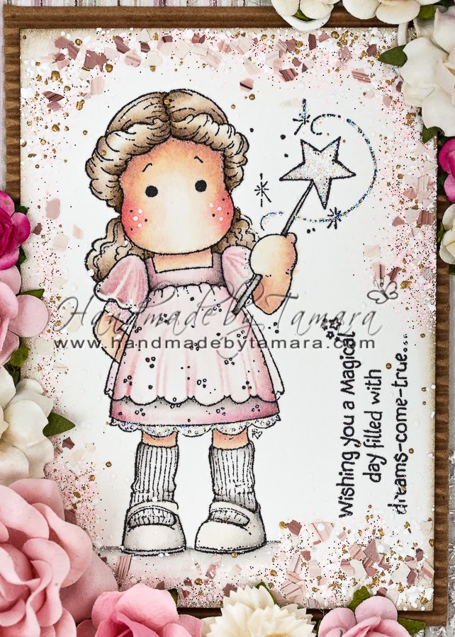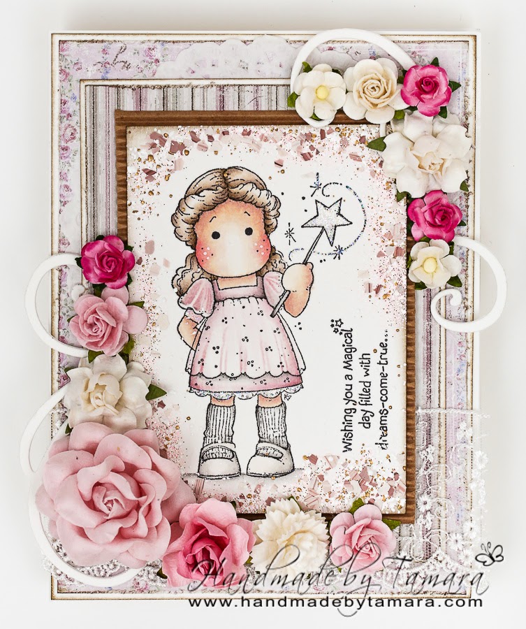 Another very pretty card Tamara, this is such a sweet Tilda and you've coloured her beautifully. Love the floral arrangements too. Hugs Suzi x