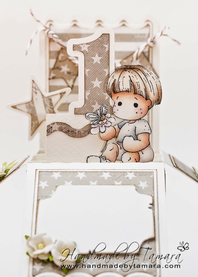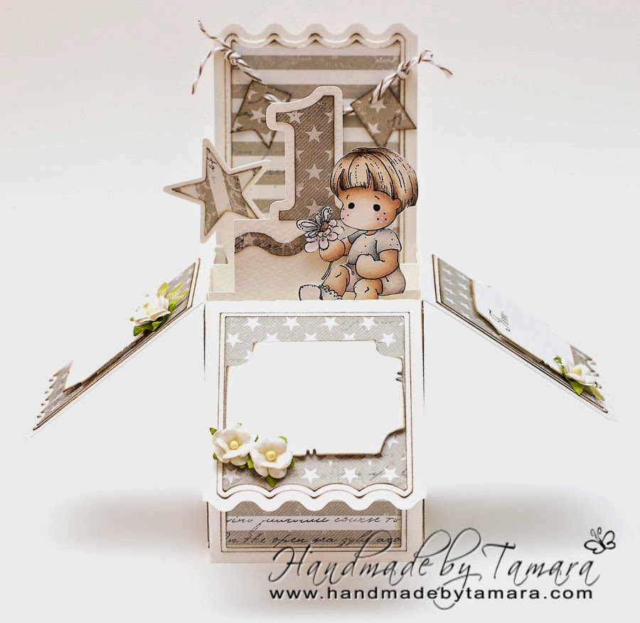 Lately there are all sorts of box cards appearing over the internet so I decided to try one for myself. This was a really fun project. I used the gorgeous marine themed Maja design papers and little cute Edwin from Special Moment collection. I love this collection. I used stamps from it all the time.