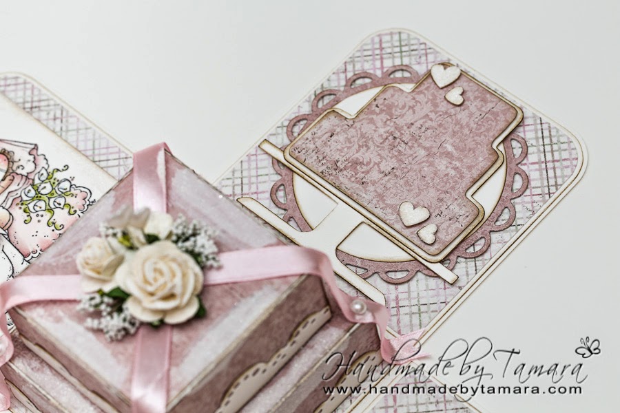 I made this explosion box a few weeks back, but just didn’t had the time to show it to you. I used a lot of glitter on it, which can’t be seen so good on the pictures but in real life it sparkles!!!