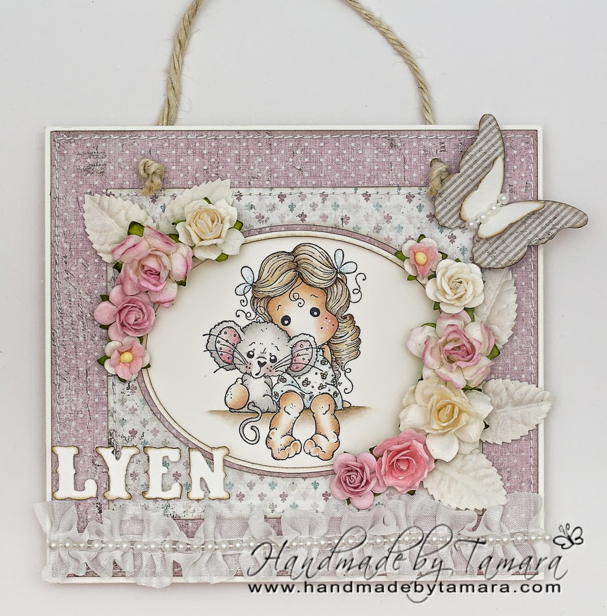 Last week I made a wall hanger for my friend’s niece. I used Tilda With Millie The Mouse from the Animal of the year collection. This wall hanger is totally CAS, because I didn’t want to over decorate it. I’m having an angina at the moment and I’m completely unable to do any coloring. 🙁 My daughter had a cold last week (she still has a running nose, but it’s getting better) and I got an angina. 🙂