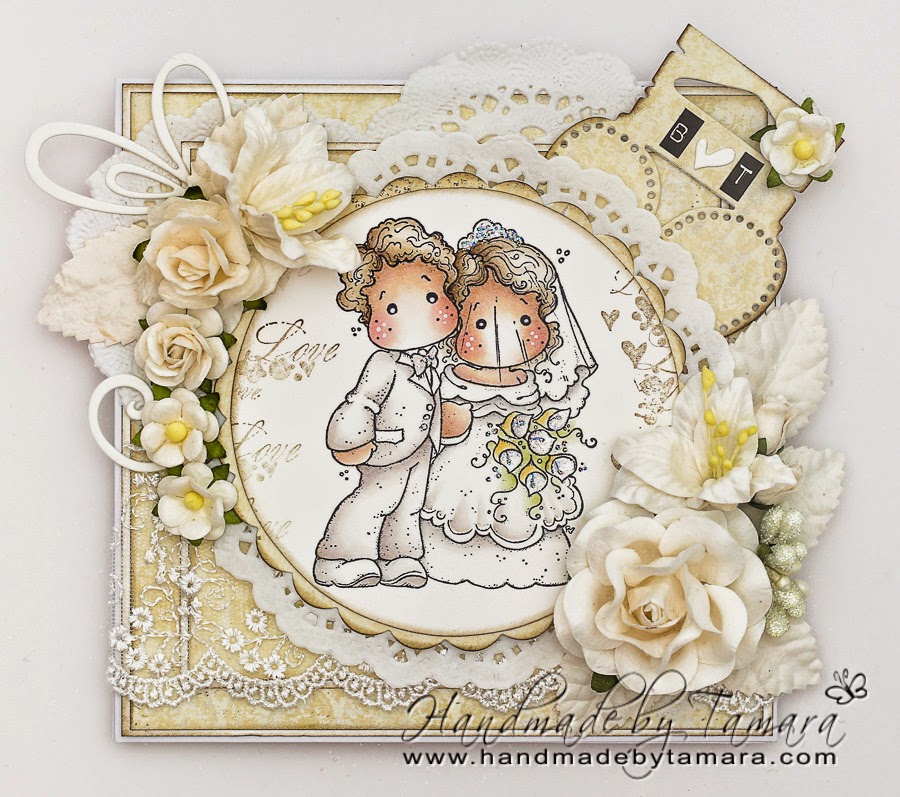 I have a new wedding card for you today. It is made in yellow which is an extra unordinary colour for me. I’m showing you this card as a midweek inspiration for Magnolia forever challenge blog. Our theme this fortnight is Lots of flowers and our sponsor is Wild Orchid crafts.