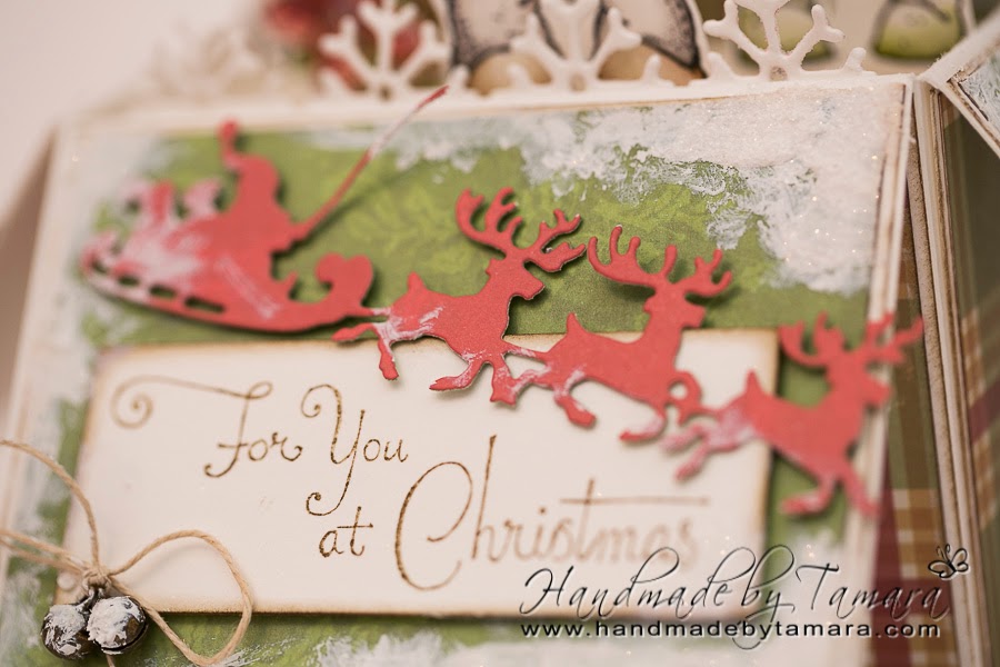 As you can see this one is made in traditional red-green colour combo and I also posted some pictures of my colouring on my FB page. I used some dies from Doohickey club kit vol. 2 and a lot of snowtex and crackle paint (+ glitter). 🙂