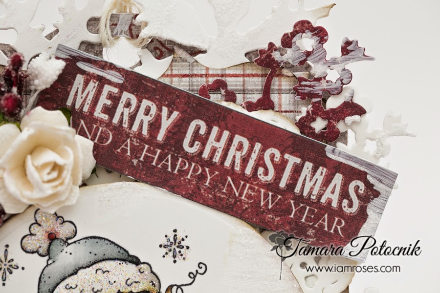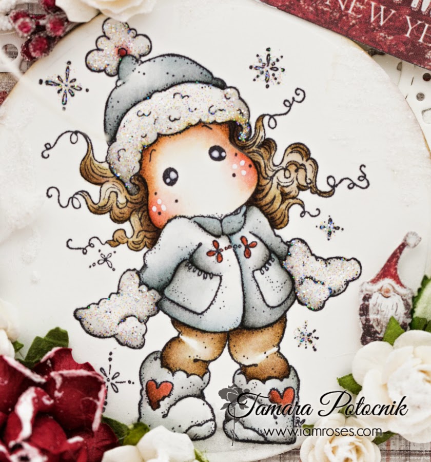 I cut the shape of mine with silhouette cameo and then decorated it with lots of IAR flowers and of course with Tilda. This cutie is from Winter Wonderland collection.