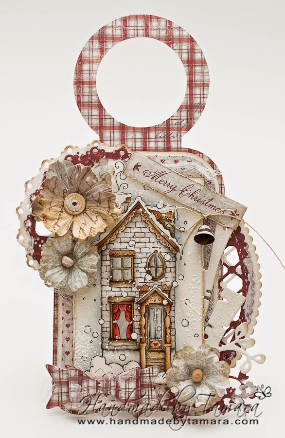 I thought of making something different for a change and here it is – wine tag. I think it looks pretty good for the first time. I used Snowy cottage from the latest Magnolia’s collection Waiting for Christmas and coloured it with distress markers and inks. I used my two new dies – Lovely view from Little Darlings and Birch from Magnolia.