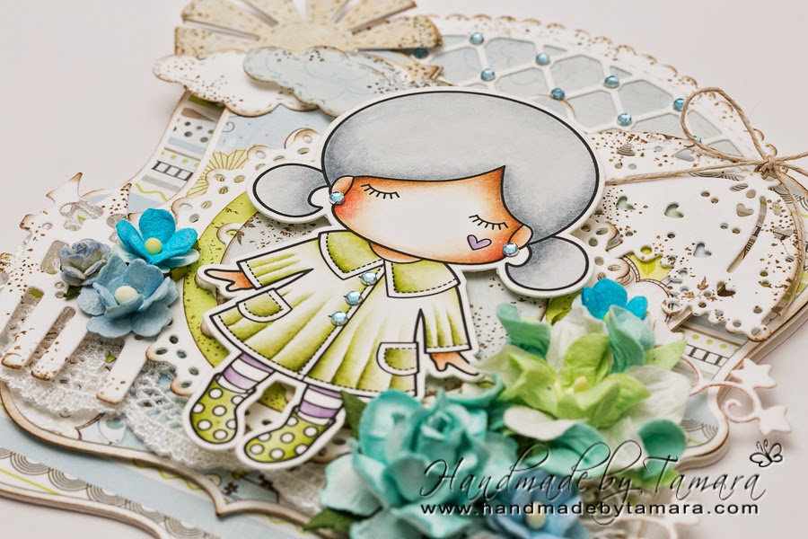 Even though it is still winter I made a Spring card in Funky colours. This week our theme at la-la land blog is Funky colours and you know me, funky is not really my thing, that’s why I coloured Marci’s hair with weathered wood distress marker and this’s as funky as it gets for me. lol