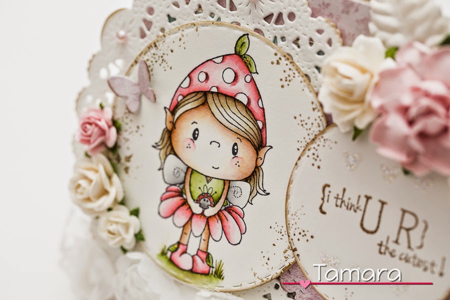 I’m back with another card for C.C. Designs. Today I’m introducing you to Elfie from Pollycraft. These Pollycraft images are really small and very detailed which makes them perfect for colouring with Distresses. I also used quite a few dies from the CCD store, you can check the list of them at the bottom of this post.