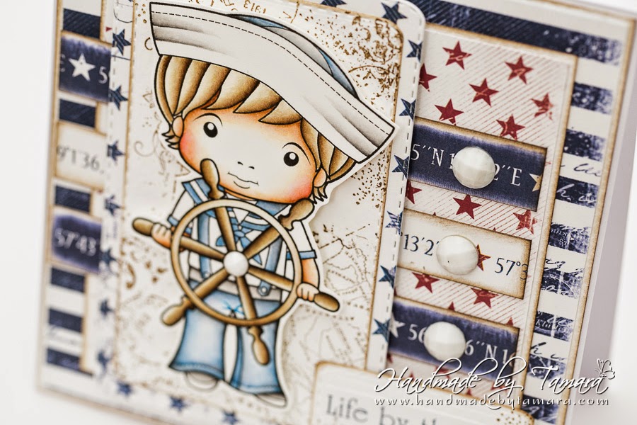 I used Sailor Luka stamp and some matching Maja Design papers (Life by the sea coll.). I think they are just perfect together.