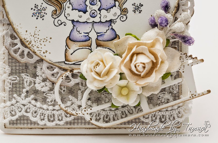 Today I’m sharing my second project as Noor! Design UK guest designer. For today’s post I made a winter themed tag. I coloured Tilda in cozy coat from Waiting for Christmas coll., 2014 with my distress markers and inks.