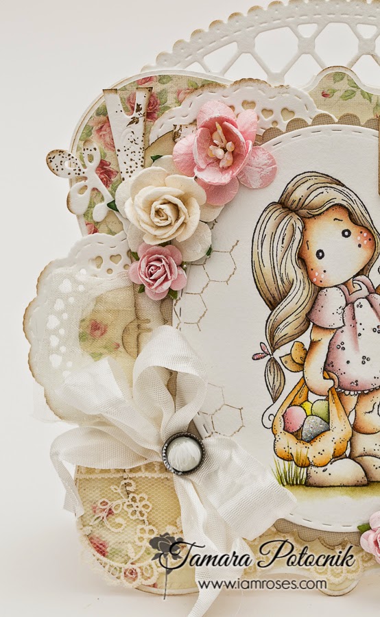 For my dt project I made an Easter card with super cute Tilda with egg and chicken from Little Easter collection.