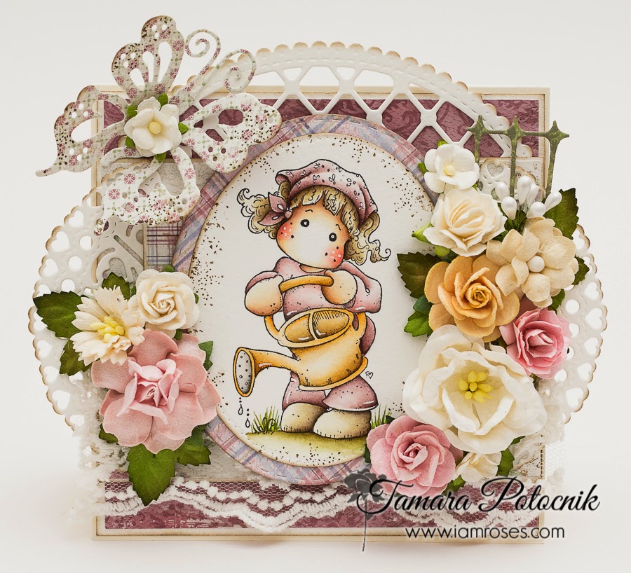 Today I have a Spring card for you with lots of pretty I am roses flowers. I used Tilda watering from Little Easter collection (I think it was released in 2013).