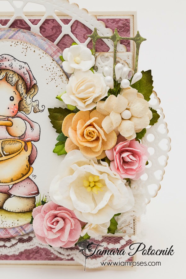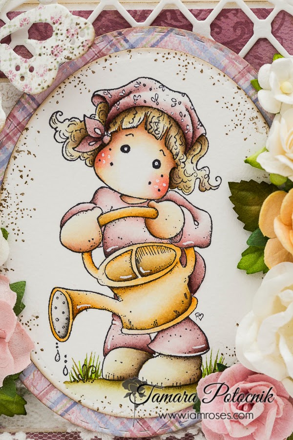 Today I have a Spring card for you with lots of pretty I am roses flowers. I used Tilda watering from Little Easter collection (I think it was released in 2013).