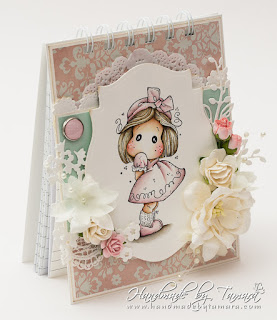 Today I’m sharing another one of my notebooks. I used Tilda with kneesocks from Sakura collection. I love colouring this one in. She’s so sweet and pretty and perfect for a girly notebook.