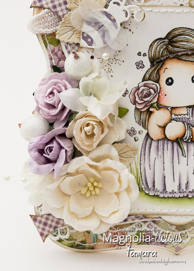 Here’s the ‘add an animal’ part. I added two cute bees. Love those!!! I used lace from The Ribbon Girl and forgeous flowers from I am roses.
