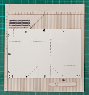 Cut 20x30cm of white cardstock and make folds with your scoring board according to the sketch below.