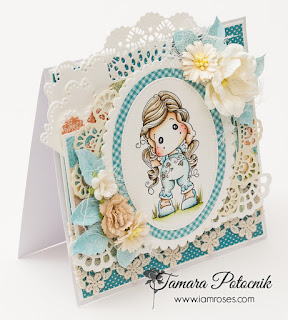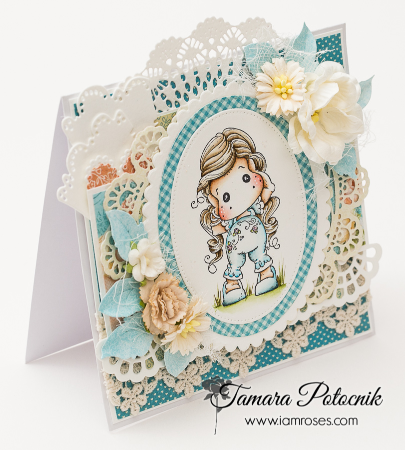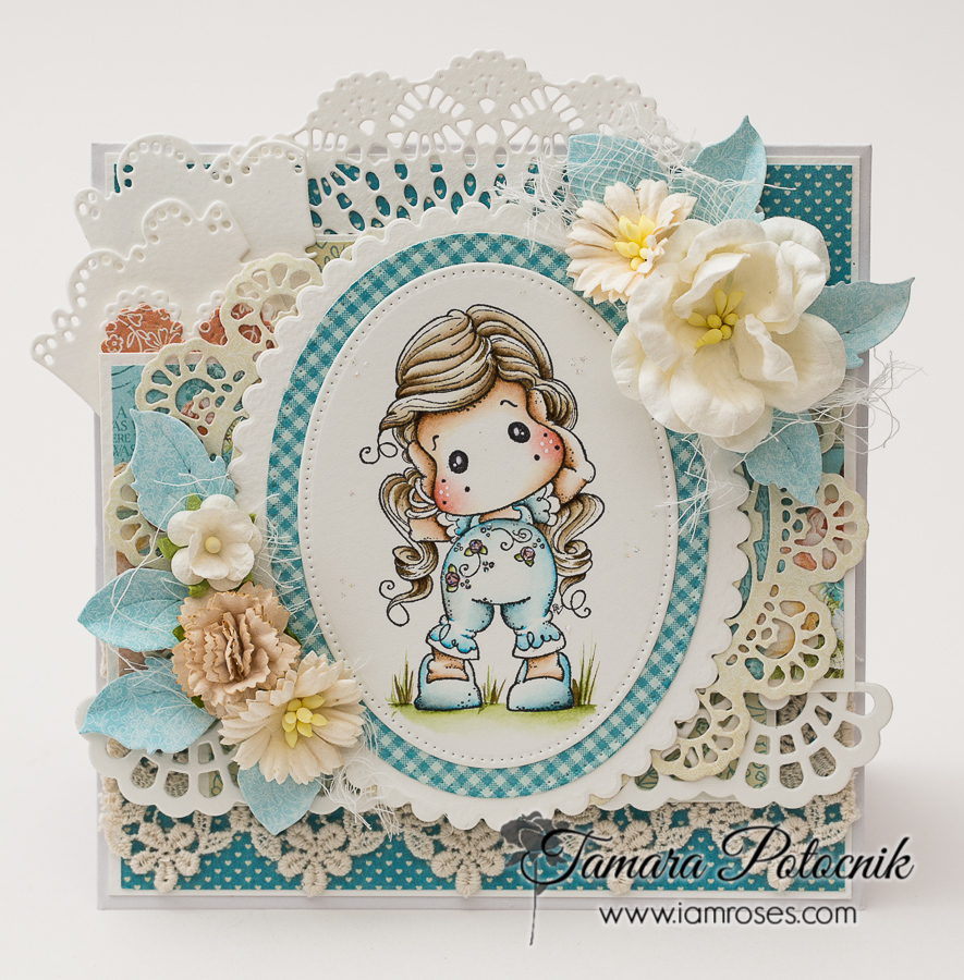 I absolutely love doing projects for I am roses, because I have all the freedom a crafter can have. Let’s just say my IAR stock of flowers is big and I love putting them on my cards. Ok. Today I have a card for you featuring Hear no evil Tilda from Pink ribbon collection, 2014.