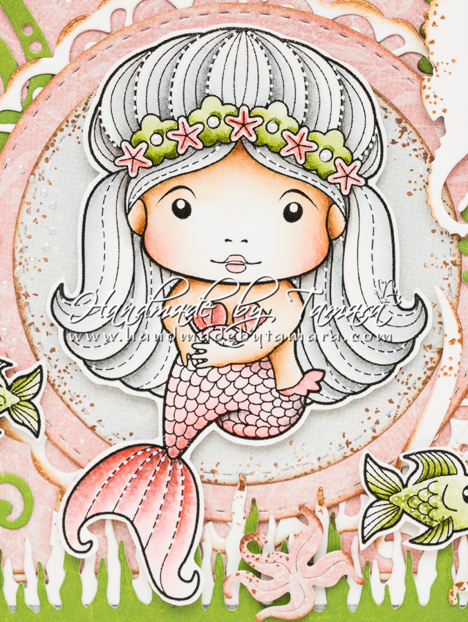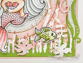 Ok, soooo …. I made a card with Sitting Mermaid Marci. I also used those cute fish for the background. You can mask this Marci with Shell and Rocks and make an awesome scene!
