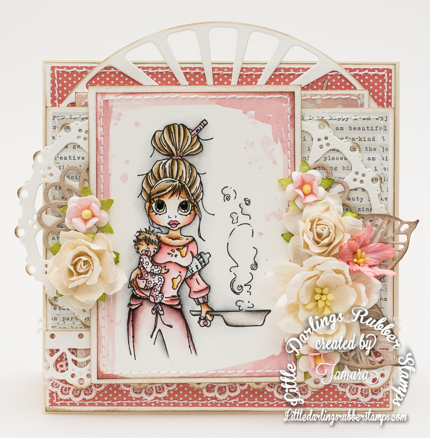 Today I’m sharing with you my latest card made for Little Darlings Rubber stamps. I used one of the Saturated canary stamps called It’s A Spring Thing: Multi-Tasking Mama. You can get this fun stamp in the store here.