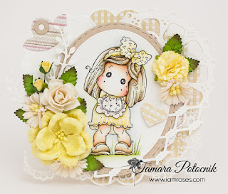 Today I’m sharing with you my small yellow card. I covered this card with gorgeous roses and other flowers from IAR. Shape of the card was cut out with silhouette cameo.