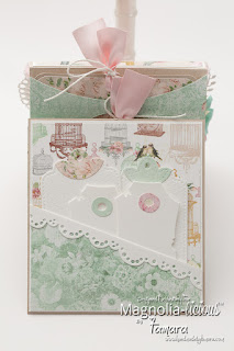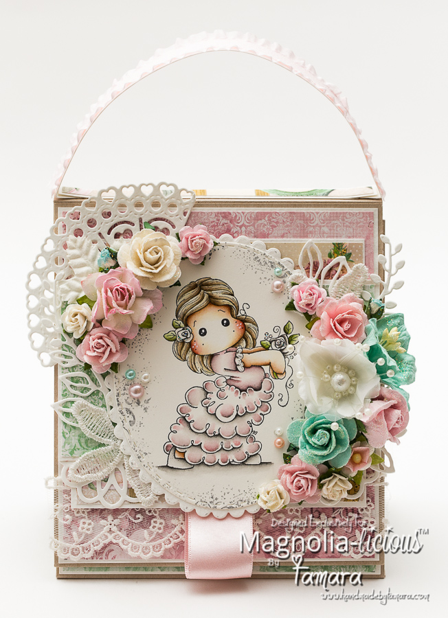 The purse closes with a hidden magnet. I used a lot of dies on this one (Magnolia, la-la land crafts, c.c. designs).