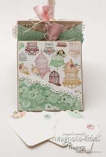 My dear friend Suzanne made an adorable little purse and I was totally impressed by it and wanted to make one myself. Sooo here it is, my little purse/mini album with Dancing in Italy from Little Italy collection (2015).