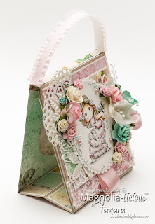 The purse closes with a hidden magnet. I used a lot of dies on this one (Magnolia, la-la land crafts, c.c. designs).