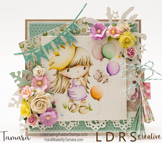 Today It’s my turn to share with you my Birthday card featuring Penny’s Birthday Surprise rubber stamp from CandiBean. I coloured this stamp with Distress markers and ink pads.
