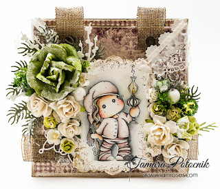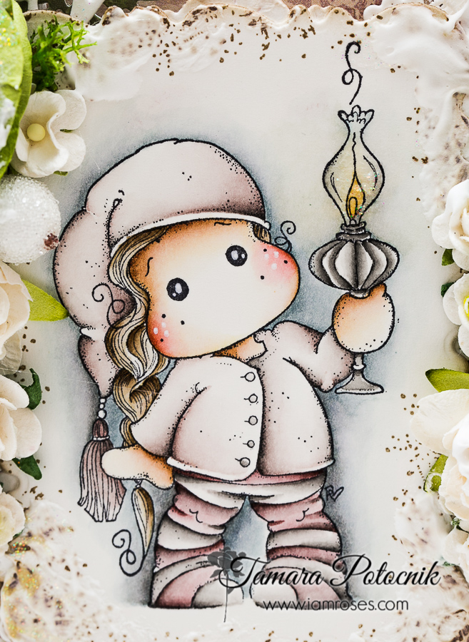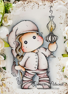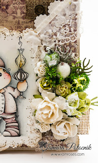I coloured Tilda using Distress markers, ink pads and spectrum aqua markers. Papers used are from pion. I have no idea about the name. All I know is they are old and discontinued.
