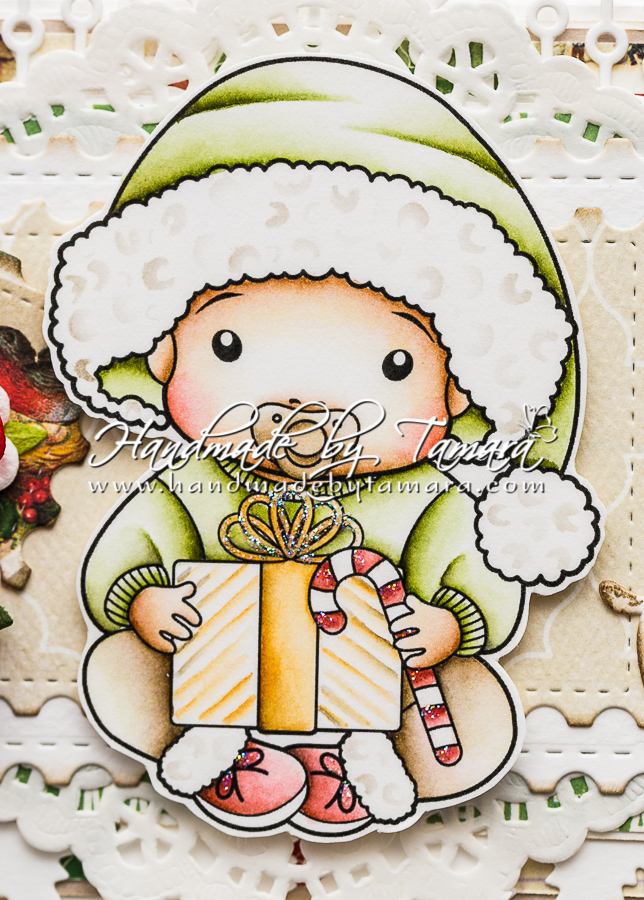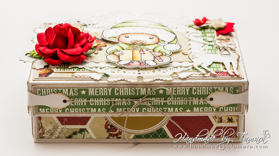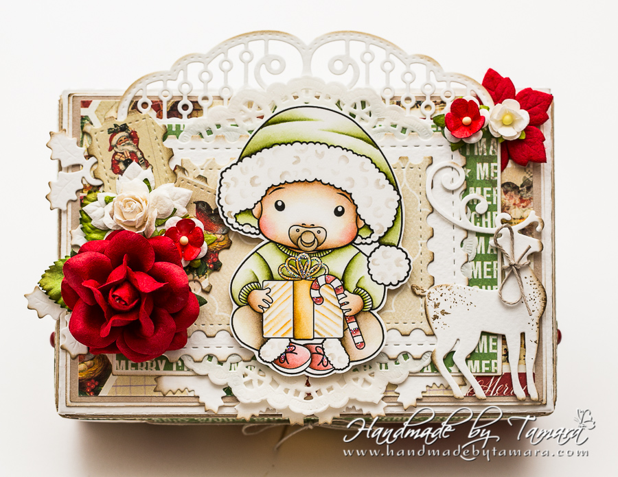I made a Christmas photo box using Christmas baby stamp and coloured it using distress markers and distress ink pads: