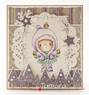 Today I’m sharing with you my card made for C.C. Designs newsletter. I used Robyn (Pollycraft) from the latest November release.