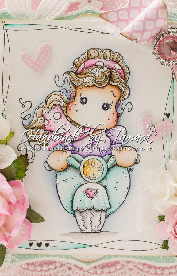 For my dt project I made a Birthday card using Italian Speedy Scooter Tilda from Little Italy coll. (Magnolia, 2015). Papers used are from First edition.