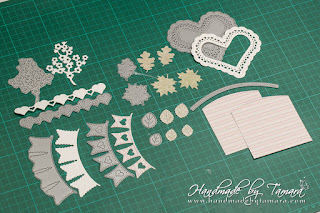 Prepare all the die cuts. To decorate this bag you’ll need: