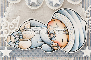 For my baby boy card I used Sleeping Baby Luka rubber stamp and coloured him with Distress markers and ink pads: