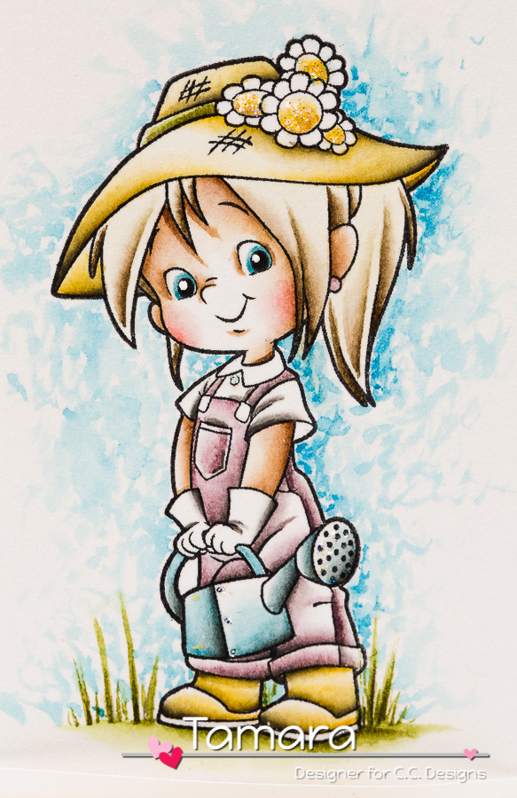 Today I have for you a card made for C.C. designs Bussiness Fb page. I used Nancy Gardens from Roberto’s Rascals. This is such an adorable image and fun for colouring too.