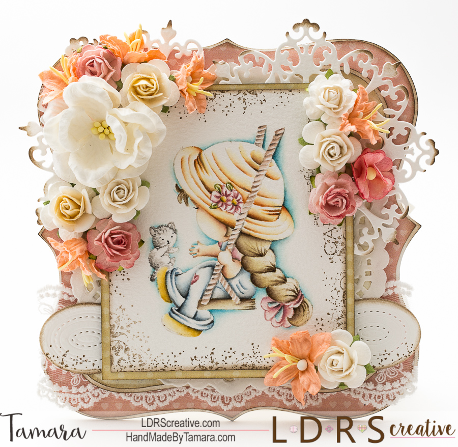 I cut out the shape of the card with Silhouette cameo and added lots of pretty I am roses flowers.