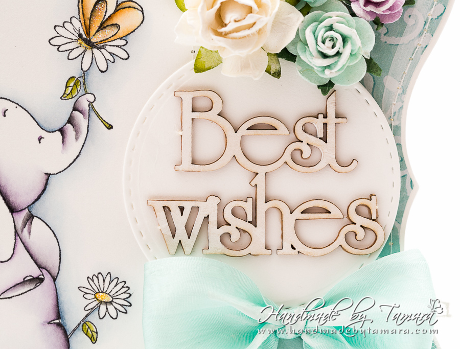 Sentiment “Best wishes” is a chipboard from Scrapiniec. I covered it with white gesso. The stitched circle behind it is a la-la land crafts die. la-la land crafts dies will be in the store soon!!!