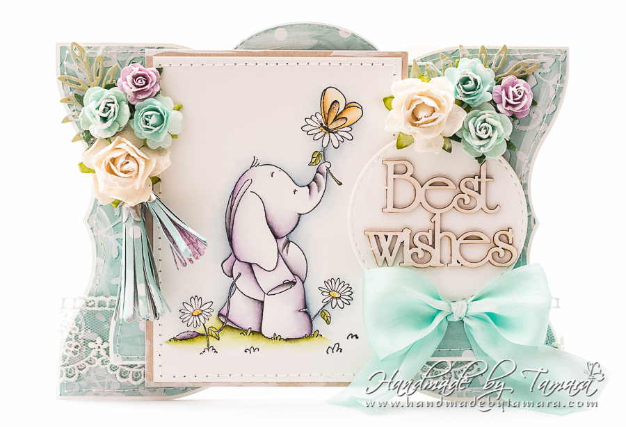 It’s Thursday and time for me to share my recent make for Noor! Design Uk. I made a Birthday card using Spring time Elephant from Whimsy stamps. I didn’t want to make a card strictly for girls or boys so I coloured this cutie in purple.